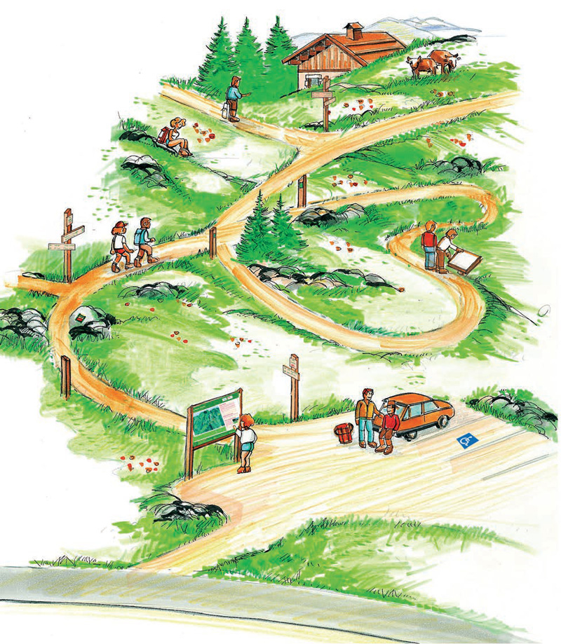 Au départ des grands itinéraires, vous trouverez des panneaux d’accueil donnant une vue d’ensemble du parcours.
